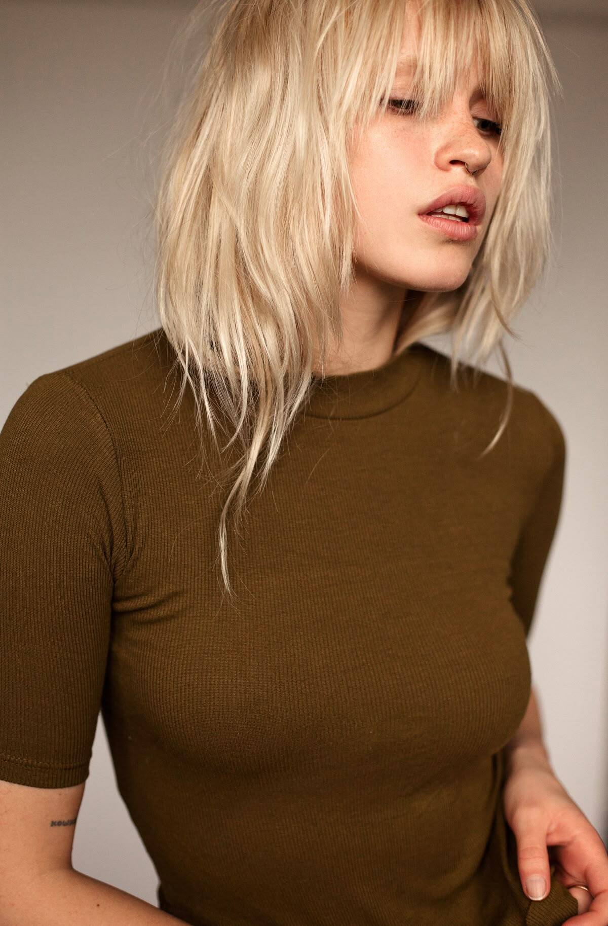 Много ярусов, рваные челка (может быть как длинной, так и короткой) и акцент на кончиках. Стрижка выглядит так, будто вы только что вышли с концерта своей любимой группы — она полна энергии и харизмы. Она практически не требует укладки. Фен с диффузором или немного текстуризирующей пасты — и ваш образ завершен.